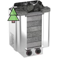 Эргономичная, стильная и функциональная электрокаменка CUMULUS CML-90NB-P от компании SAWO станет настоящей находкой для парных помещений объёмом 8-14 метров кубических. Печь устанавливается навесным способом на стену. Основным материалом для производства финские инженеры избрали устойчивую к коррозии высококачественную нержавеющую сталь. Материал обеспечивает не только длительный срок эксплуатации, но и достойный внешний вид электрокаменки. Особой изюминкой печи CUMULUS CML-90NB-P является облицовка из талькохлорита фронтальной части печи. Сверху печь имеет 2 арома чаши из натурального камня, что непременно оценят любители ароматерапии. Электрокаменка вмещает в себя до 22 кг камней, которые вместе с талькохлоритной облицовкой массой 10 кг ускоряют прогрев сауны и снижают расход электроэнергии на поддержание нужной температуры воздуха. Подливая на камни воду или отвар из трав, вы быстро наполните парную большим количеством лёгкого мелкодисперсного пара. Управление SAWO CUMULUS CML-90NB-P осуществляется при помощи встроенной в нижнюю часть каменки панели управления.
