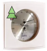 Термогигрометр 285-THA от компании Sawo имеет оригинальную квадратную форму. В широкой рамке из древесины осины находится большой, круглый, графичный циферблат. Циферблат разделён на две шкалы. Одна из них - это гигрометр, который с точностью измерит уровень влажности, другая - термометр. Данный прибор прекрасно подойдёт для использования в парной. Благодаря универсальному дизайну он станет прекрасным дополнением любого интерьера.