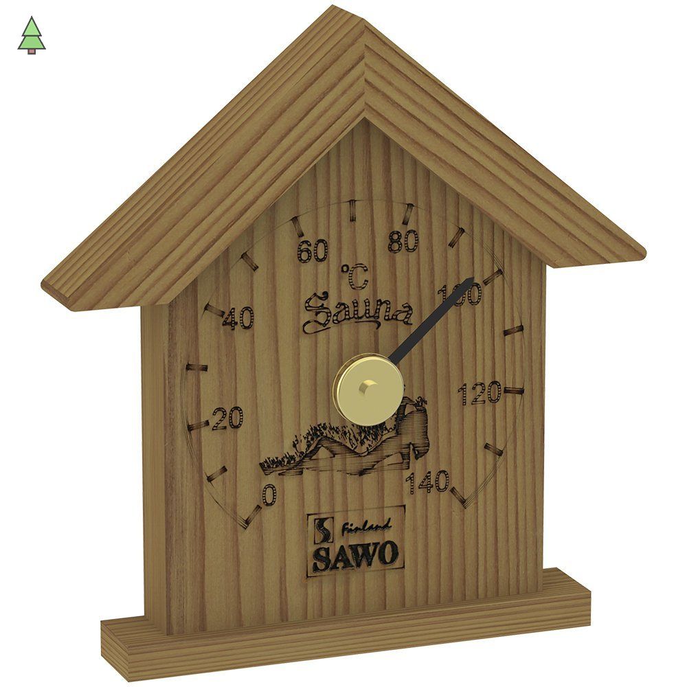 Термометр 115-TD от компании Sawo имеет необычную форму домика. Выполнен измерительный прибор из древесины канадского кедра. На основу термометра нанесён большой, графичный циферблат, который сообщит о температуре воздуха. Данный прибор прекрасно подойдёт для использования в парной. Максимально допустимая для измерения температура составляет 140 градусов Цельсия. Этого максимума достаточно для комфортных банных процедур. Нагнетание в парном помещении большей температуры нежелательно, так как может быть опасным для здоровья. Благодаря универсальному дизайну термометр станет прекрасным дополнением любого интерьера.